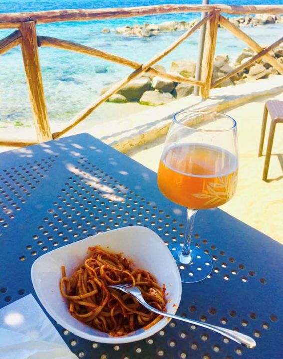 Sonne, strand, blaues meer und leckeres essen.